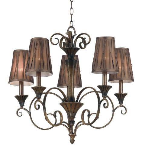 Manufacturer: Kenroy Home Lighting. Part Number: 90565MB. Product Description: Lincolnshire 5 Light Chandelier. Product Type: Fixtures. Finish: Mocha Bliss. Shade: 5" Diameter Pleated Fabric. Bulbs: (5) Candelabra, 60 Watt. .